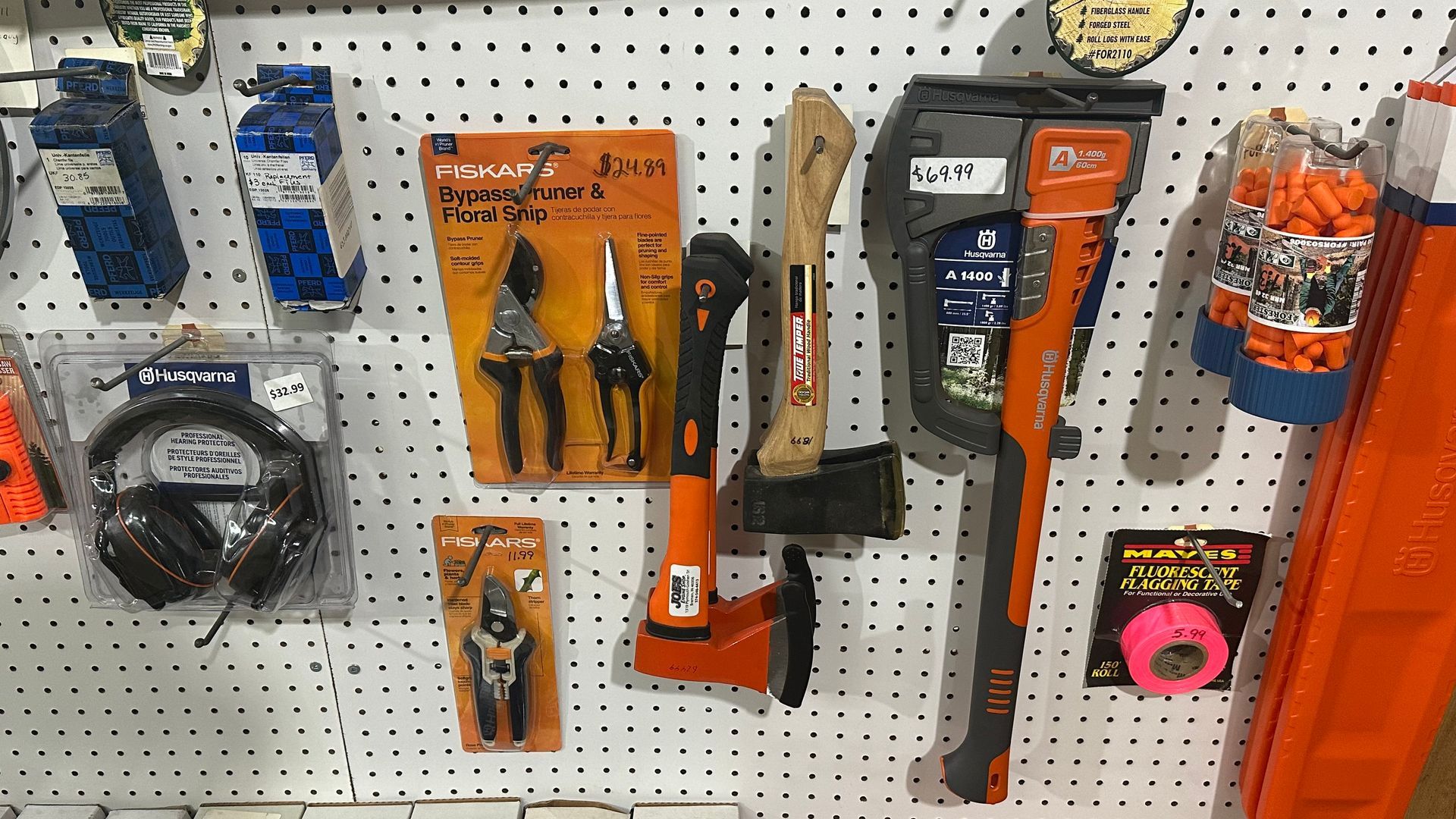 - Safety gear including chainsaw chaps, helmets, hearing protection, and eye protection.