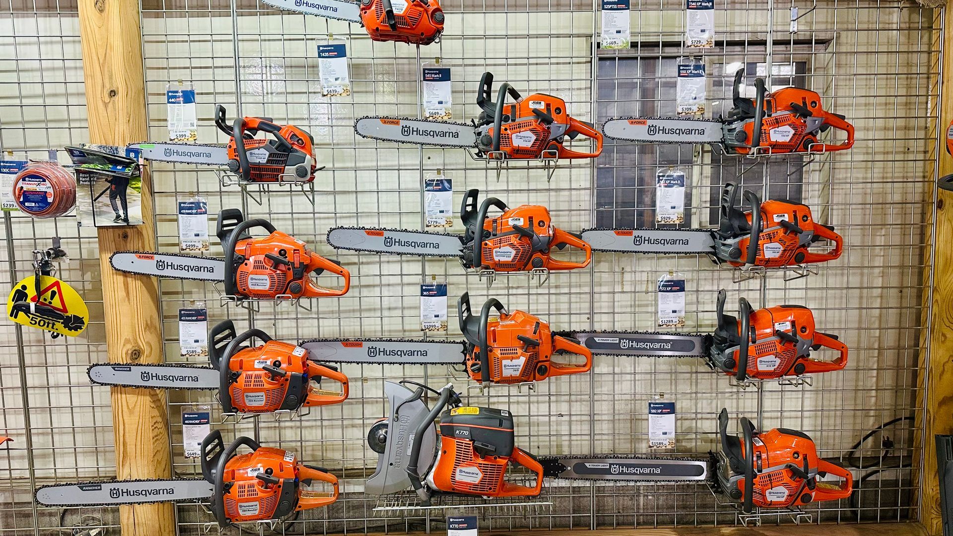 We stock chainsaws with bar lengths for pruning up to dropping big trees. Models light enough for overhead work but powerful enough they don't quit in thick wood. Homeowner saws work fine for occasional use. Commercial saws handle regular cutting and keep going year after year.